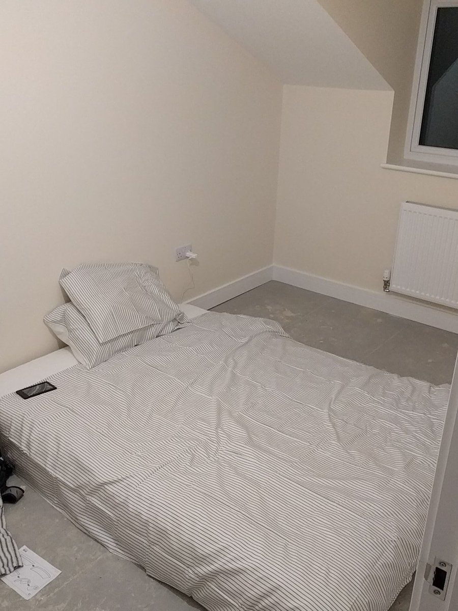 First night (no TV and no curtains so going to sleep while it's dark so I can get up early and move stuff)
